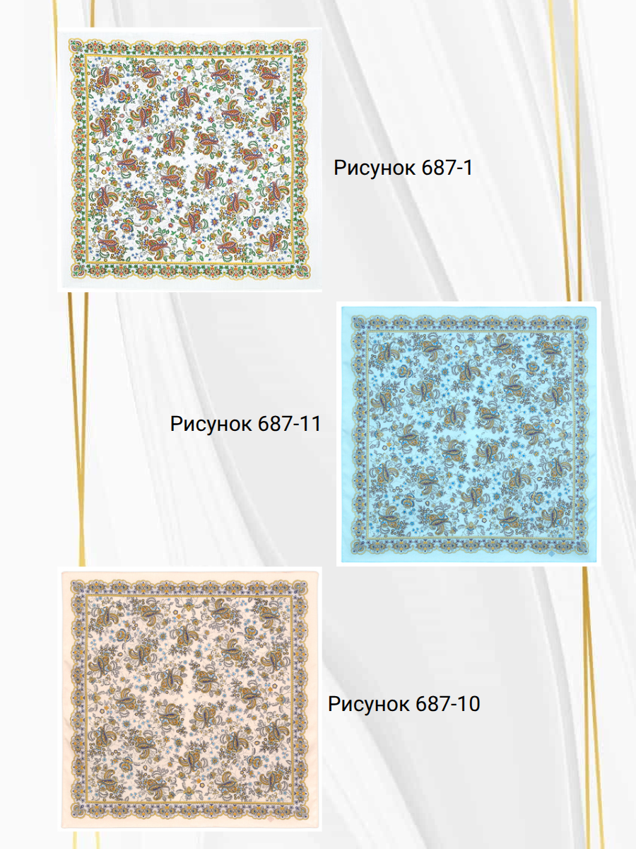Платок из хлопка "Радостный", 687-2, 72х72см Художник: Сотскова Галина 910 руб. Наличие: мало Рисунок 687-2 |